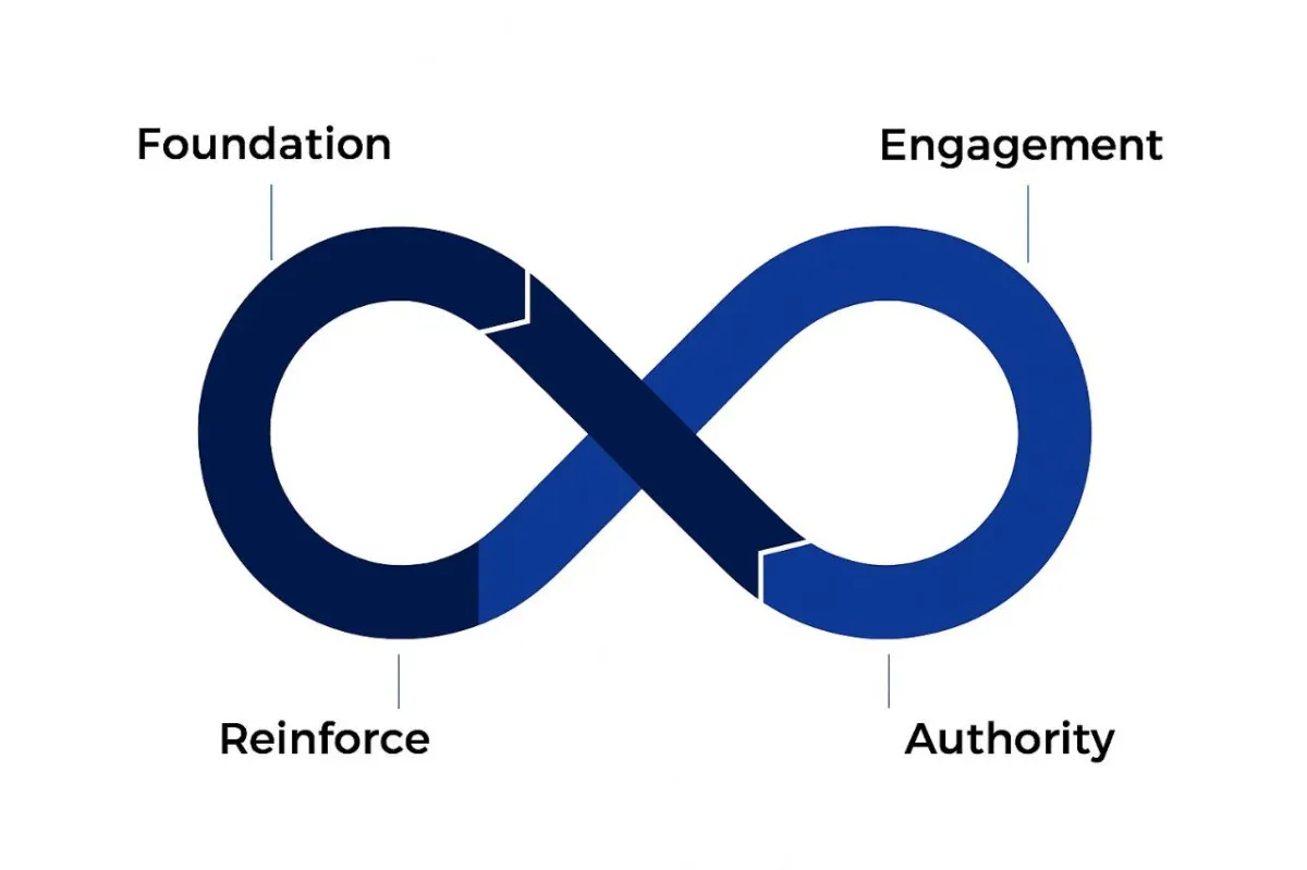Building online authority isn't random—it's a systematic process that starts with your foundation. When your Google Business Profile and website are properly optimized and aligned, they trigger a chain reaction: